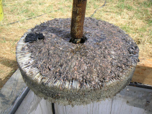 Mittels Kunststoffbürsten werden die weichen Ablagerungen an der Rohrinnenwand abgelöst und in den Brunnensumpf gebracht. in geringem Umfang werden sie auch aus dem Brunnen entfernt, wie auf dem Bild zu erkennen ist. Durch die kolbende Wirkung werden auch teilweise Ablagerungen aus den Filterschlitzen und dem Kies gespült.